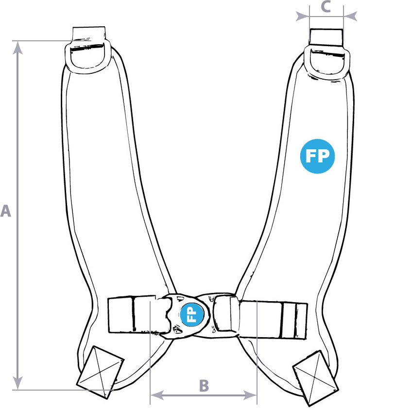Die Weite des Gurts kann über den Verschluss auf der Vorderseite reguliert werden. Die niedrige Anordnung des Verschlusses reduziert die Gefahr, dass der Gurt in Richtung Halsausschnitt verrutscht.