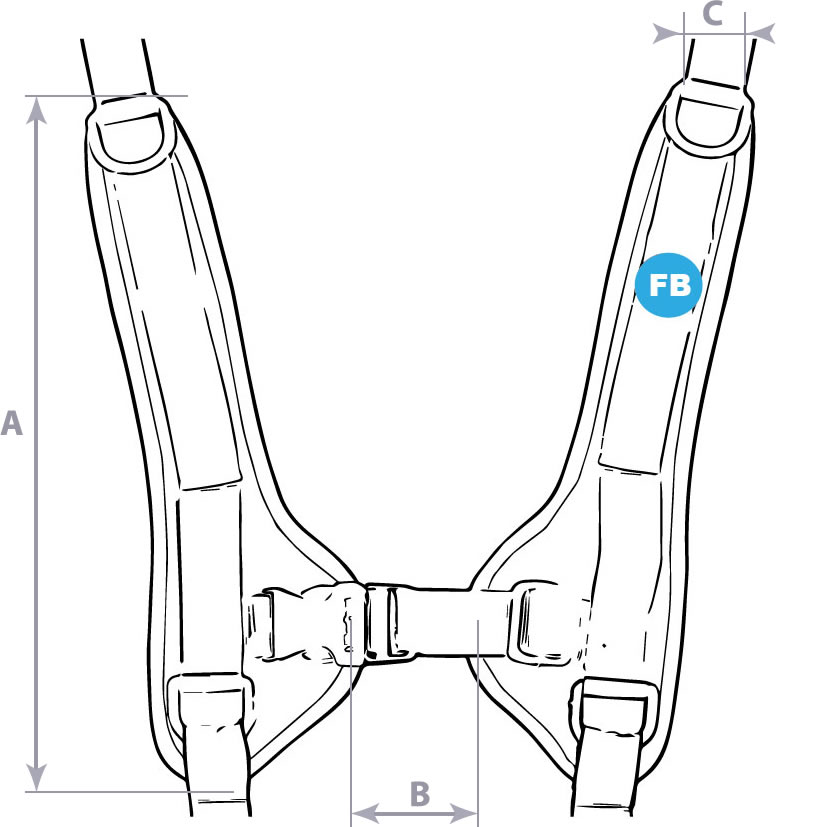 Die Weite des Gurts kann über den Verschluss auf der Vorderseite reguliert werden. Die Anordnung des Verschlusses reduziert die Gefahr, dass der Gurt in Richtung Halsausschnitt verrutscht.