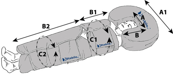 Das Set besteht aus drei Elementen – dem Kopfstabilisator und zwei Gurtelementen mit Klettverschluss. Da der Immobilisator ohne Metallbestandteile konzipiert wurde, gilt er auch als Hilfsmittel beim Röntgen, CT oder MRT.
